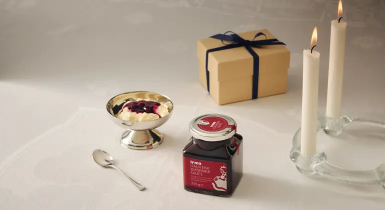 Glæd dig til smagen af Irmas helt nye kirsebærsauce. Direkte fra Italien og fremstillet af de skønneste, solmodne italienske kirsebær og med en dejlig julenote af mandelsmag. Irma kirsebærsauce er ren forkælelse til julens risalamande, og ikke mindst som lækkert tilbehør til osten eller som ingrediens i cocktails, hjemmelavet is, eller i en trifli.
